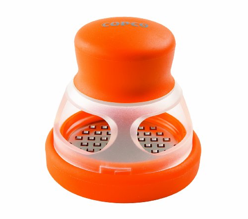 - Interchangeable stainless steel blades click into place, 1 fine and 1 medium grate