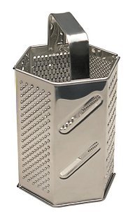 The six sided stainless steel grater by Sveico is perfect for all of your cheese grating needs. The six grating surfaces give you several different options from a course to a very fine grating of cheese. Each of the six sides measure 6 inches high by 2.5 inches wide. Made in Sweden. R88